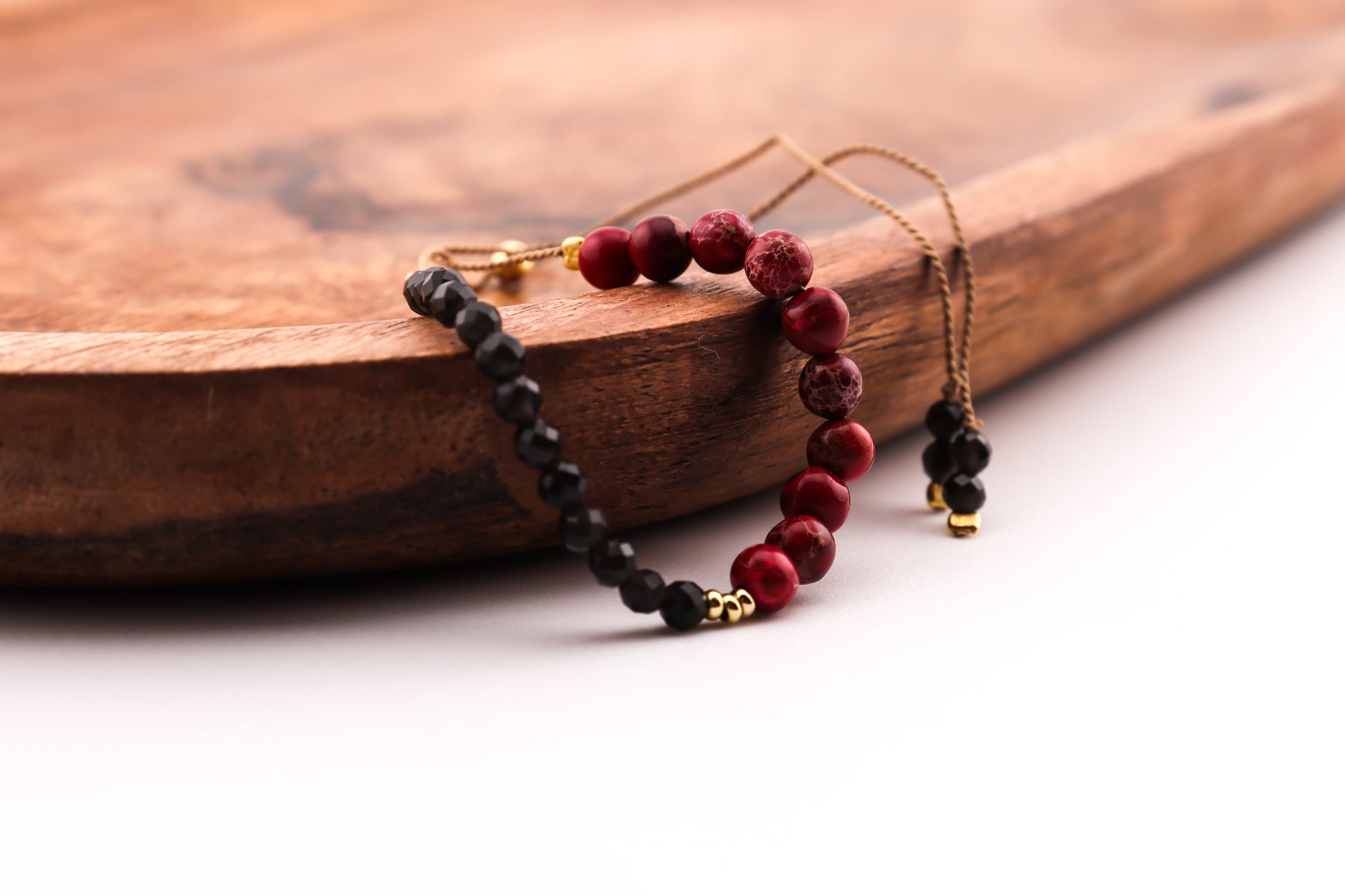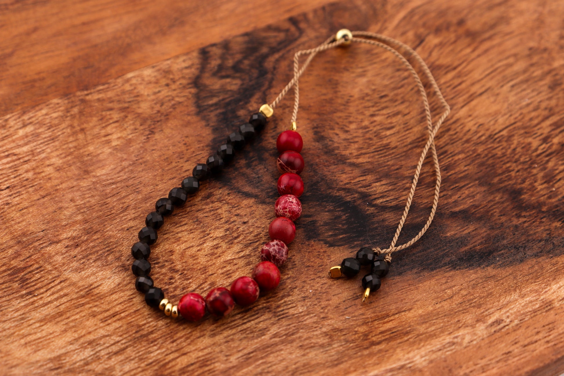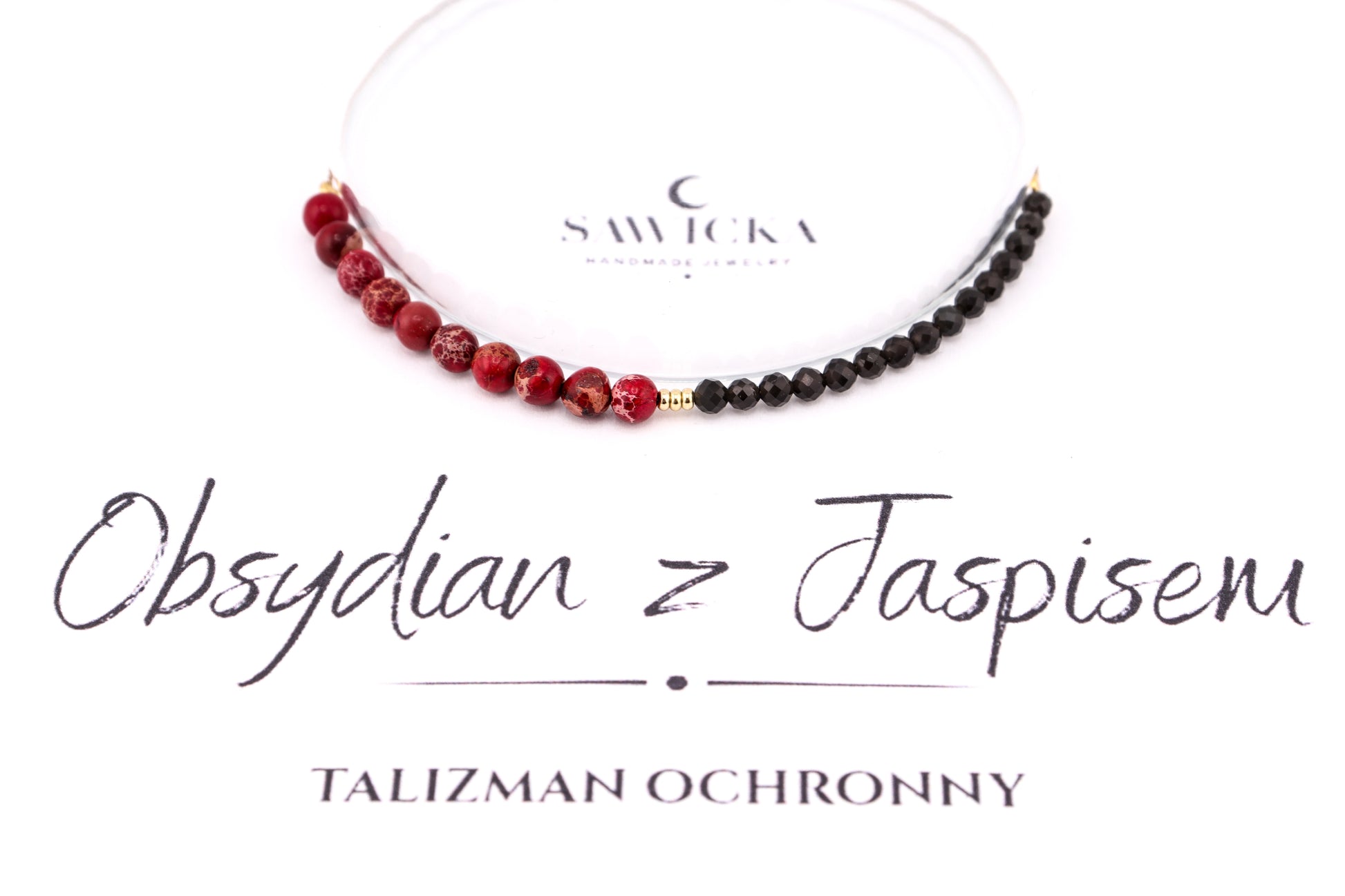 BRANSOLETKA TALIZMAN OCHRONNY OBSYDIAN Z JASPISEM