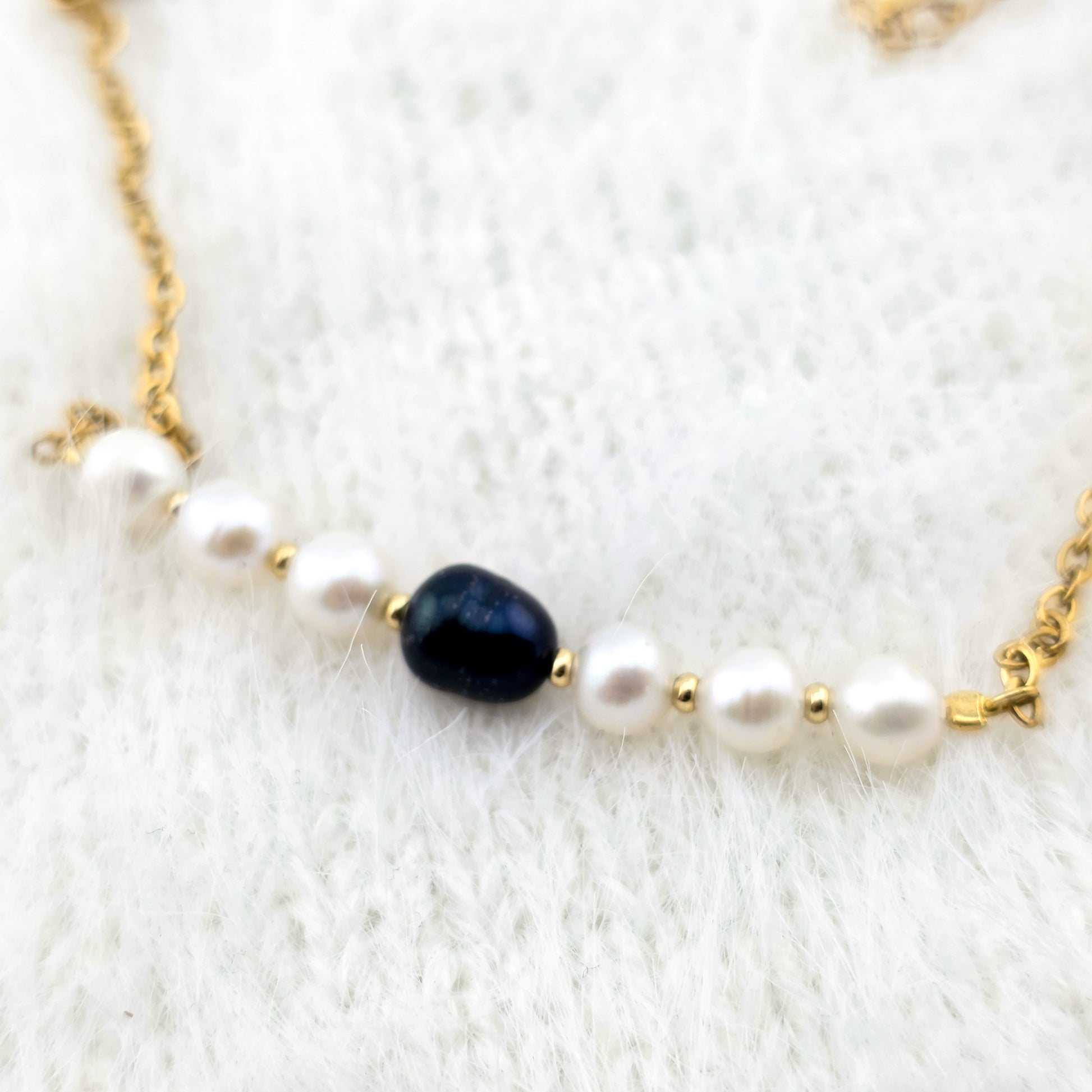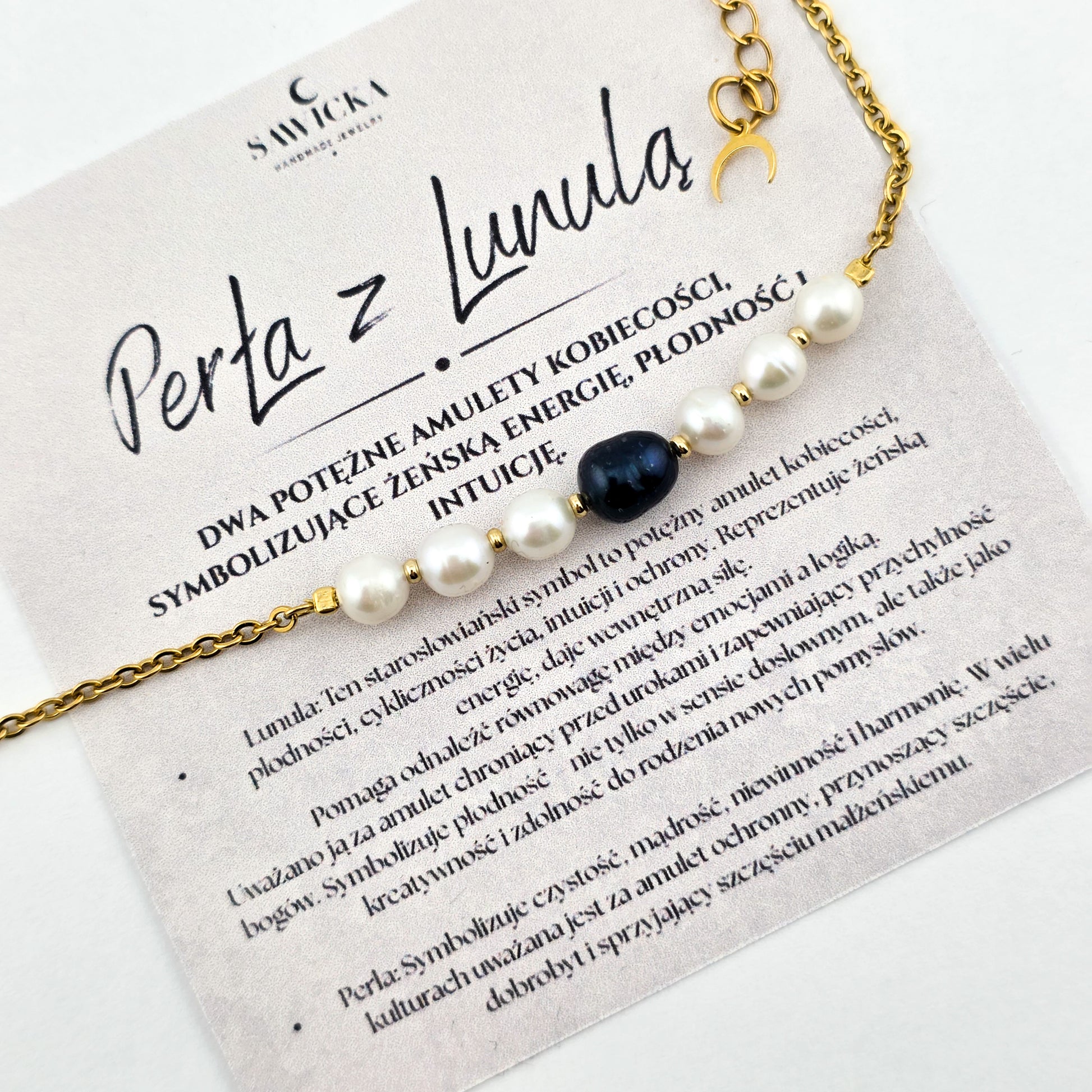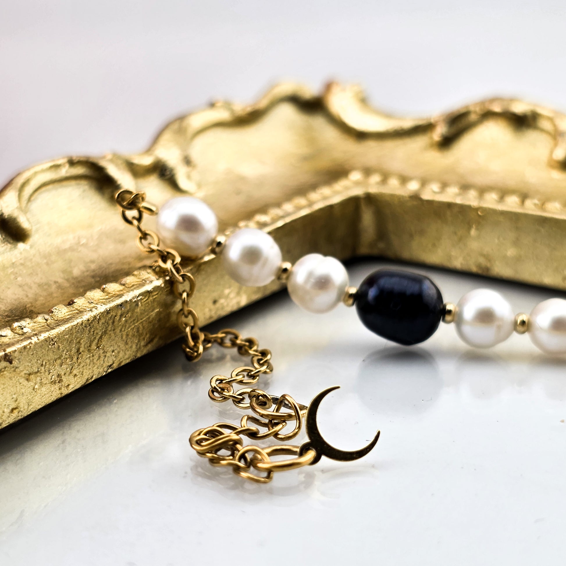Bransoletka z Czarną Białą perłą na łańcuszku