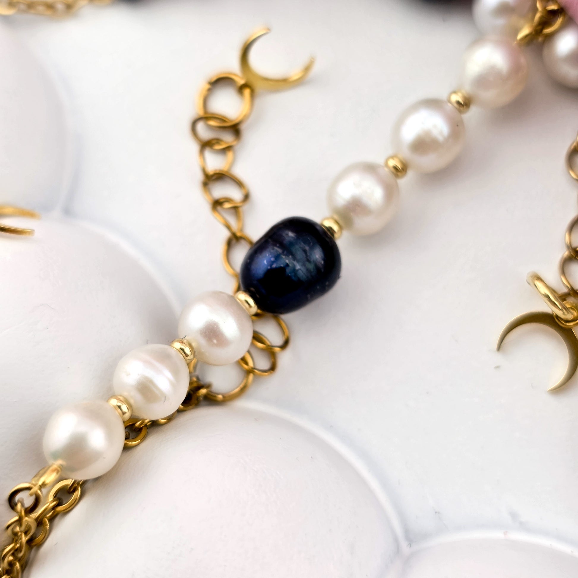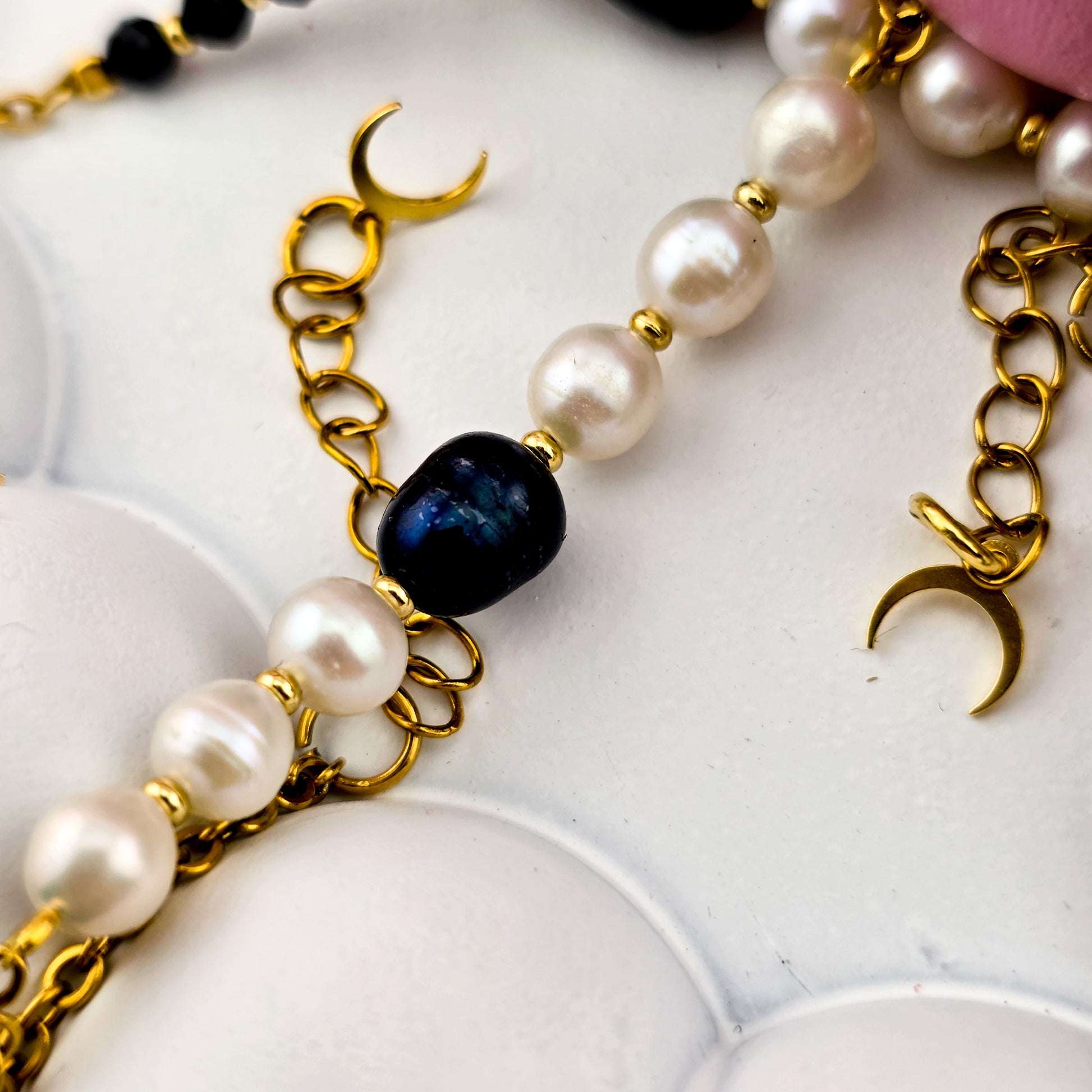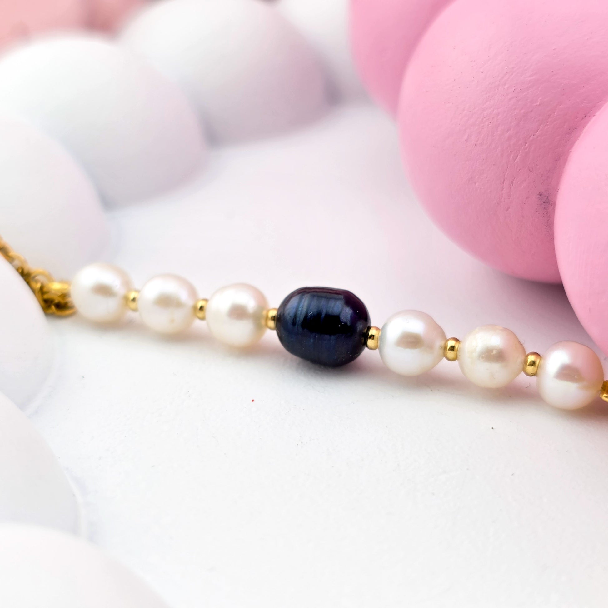 Bransoletka z Czarną Białą perłą na łańcuszku