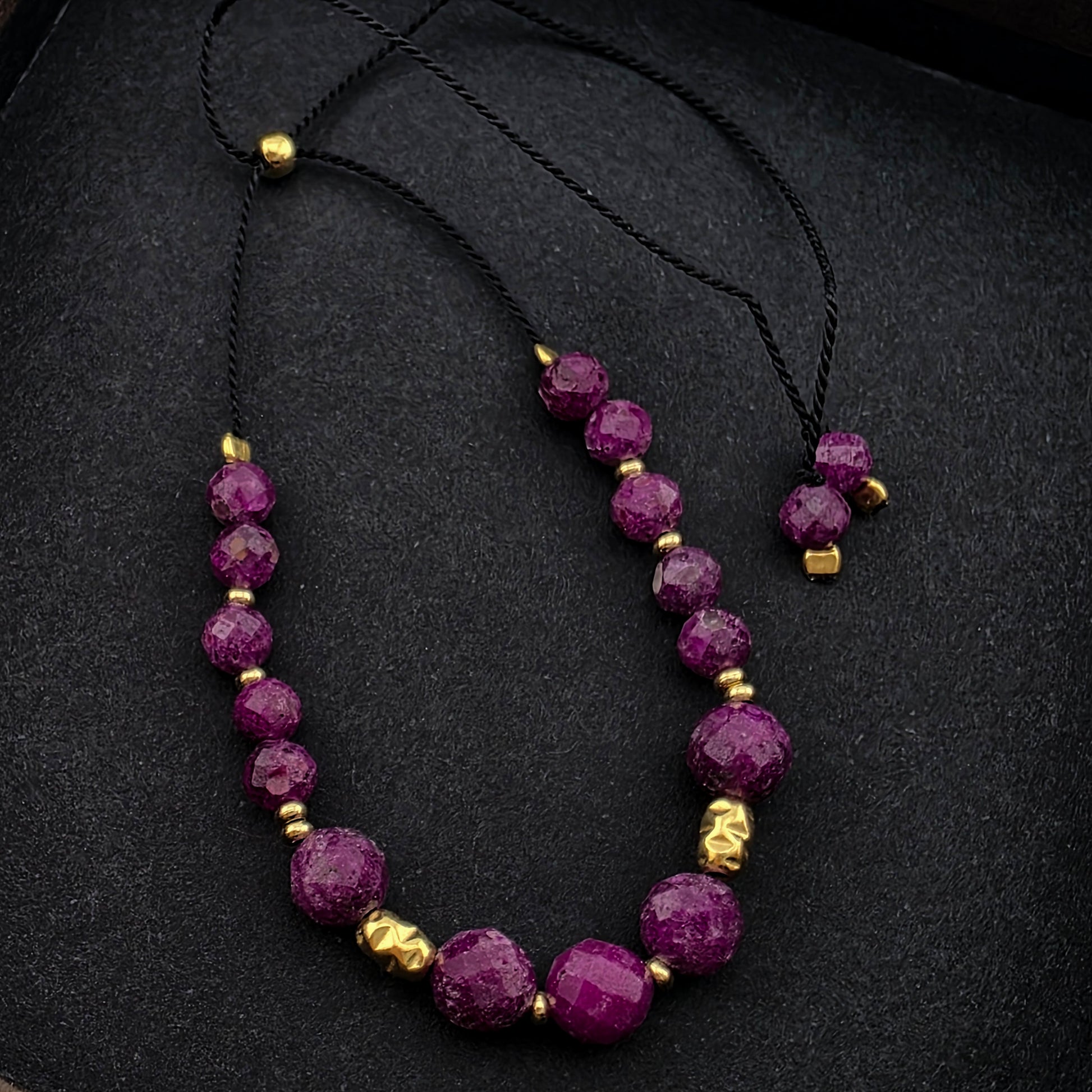 Materiał: Sznurek jedwabny , koraliki /elementy ze srebra próby 925 pozłacane 24kt złotem.