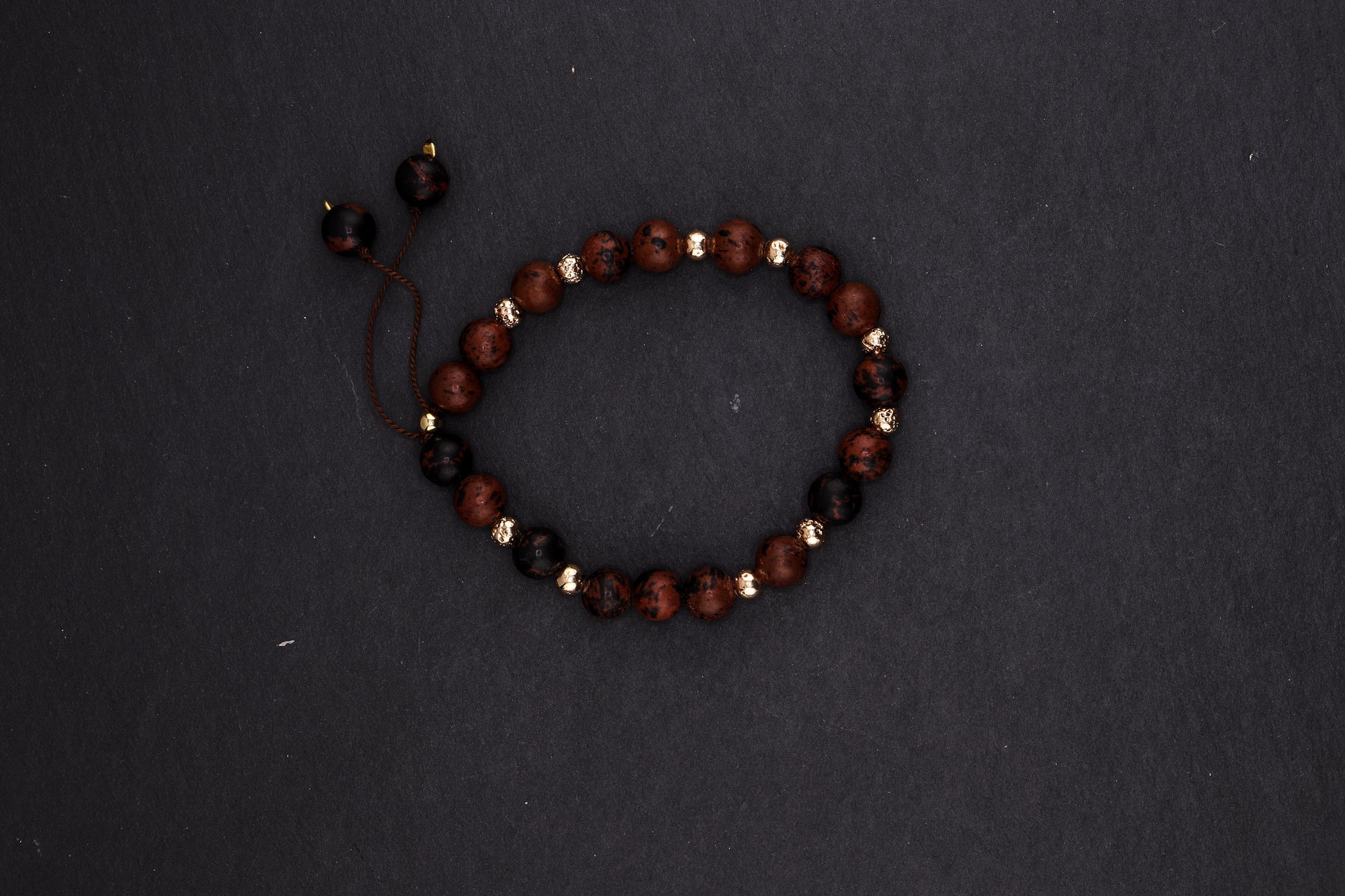 Bransoletka wykonana z kamieni naturalnych, na jedwabnej nici oraz koralików/elementów ze srebra próby 925 pozłacanych 24kt złotem.