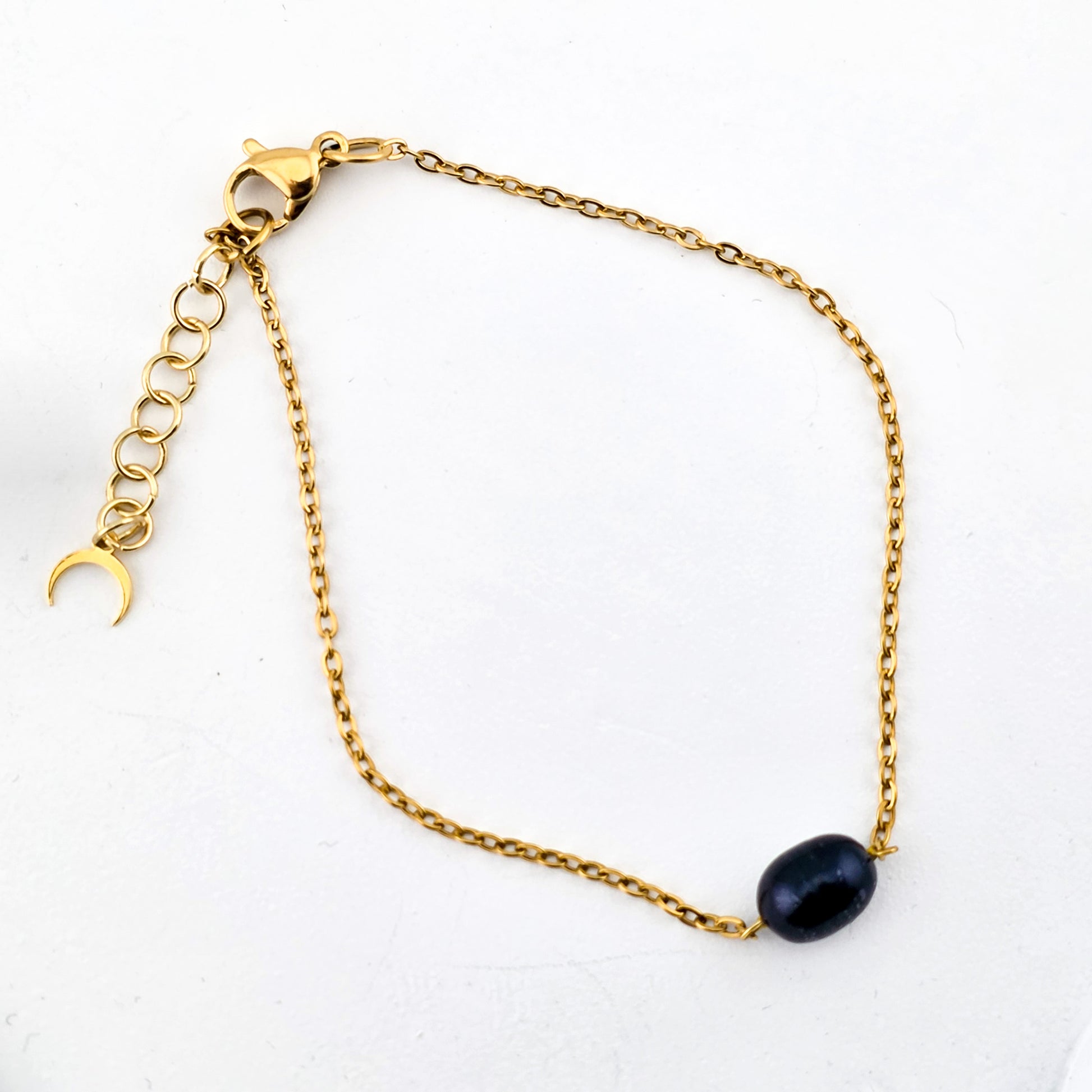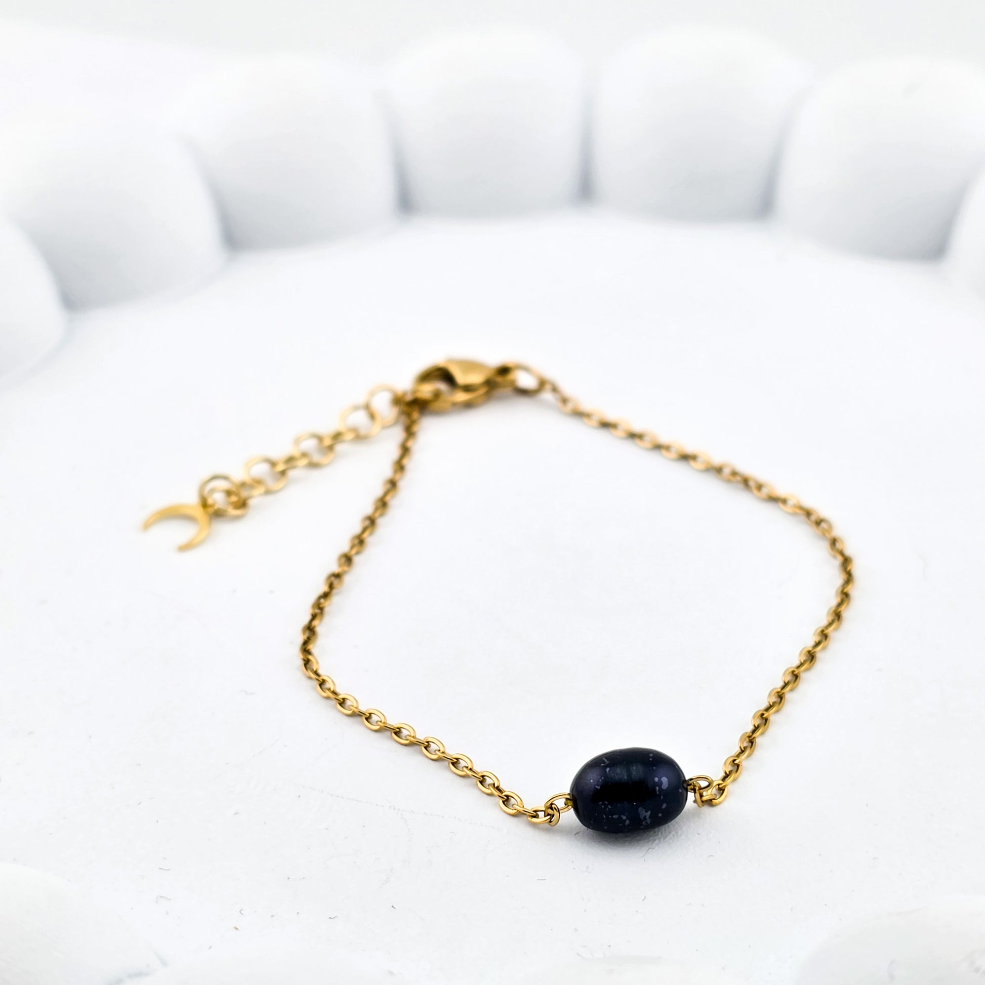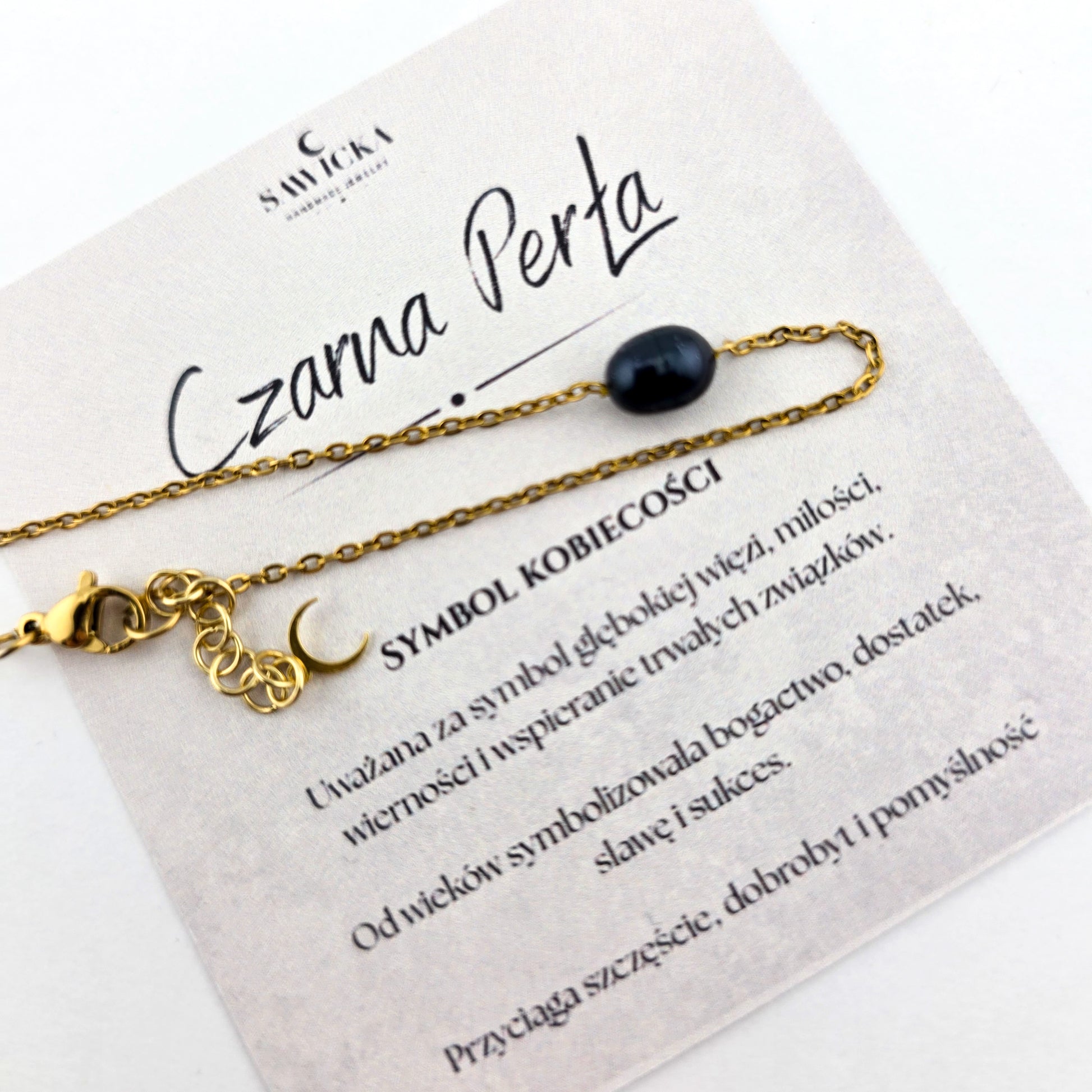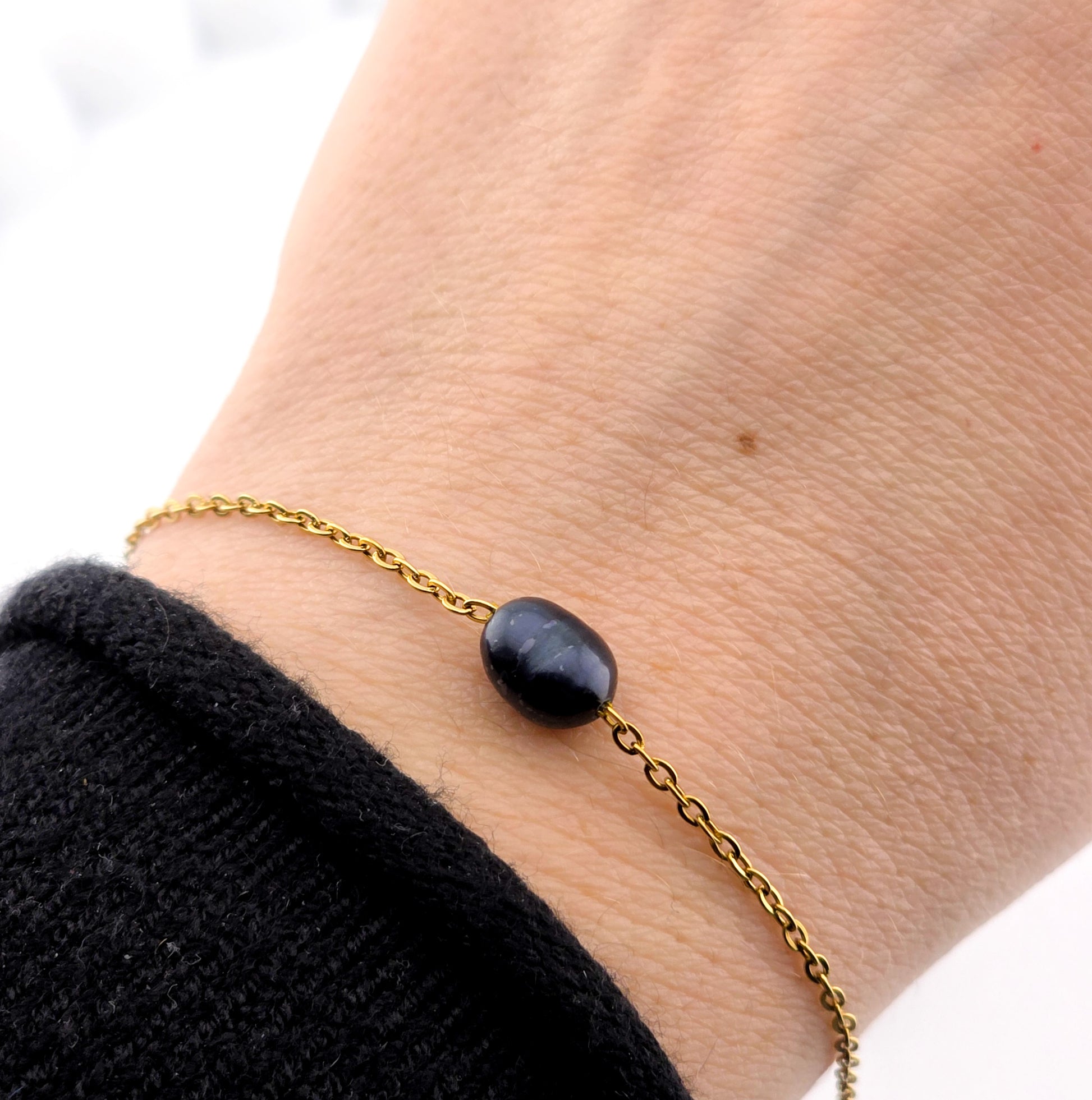 Czarna perła na łańcuszku - Bransoletka z perłą naturalną