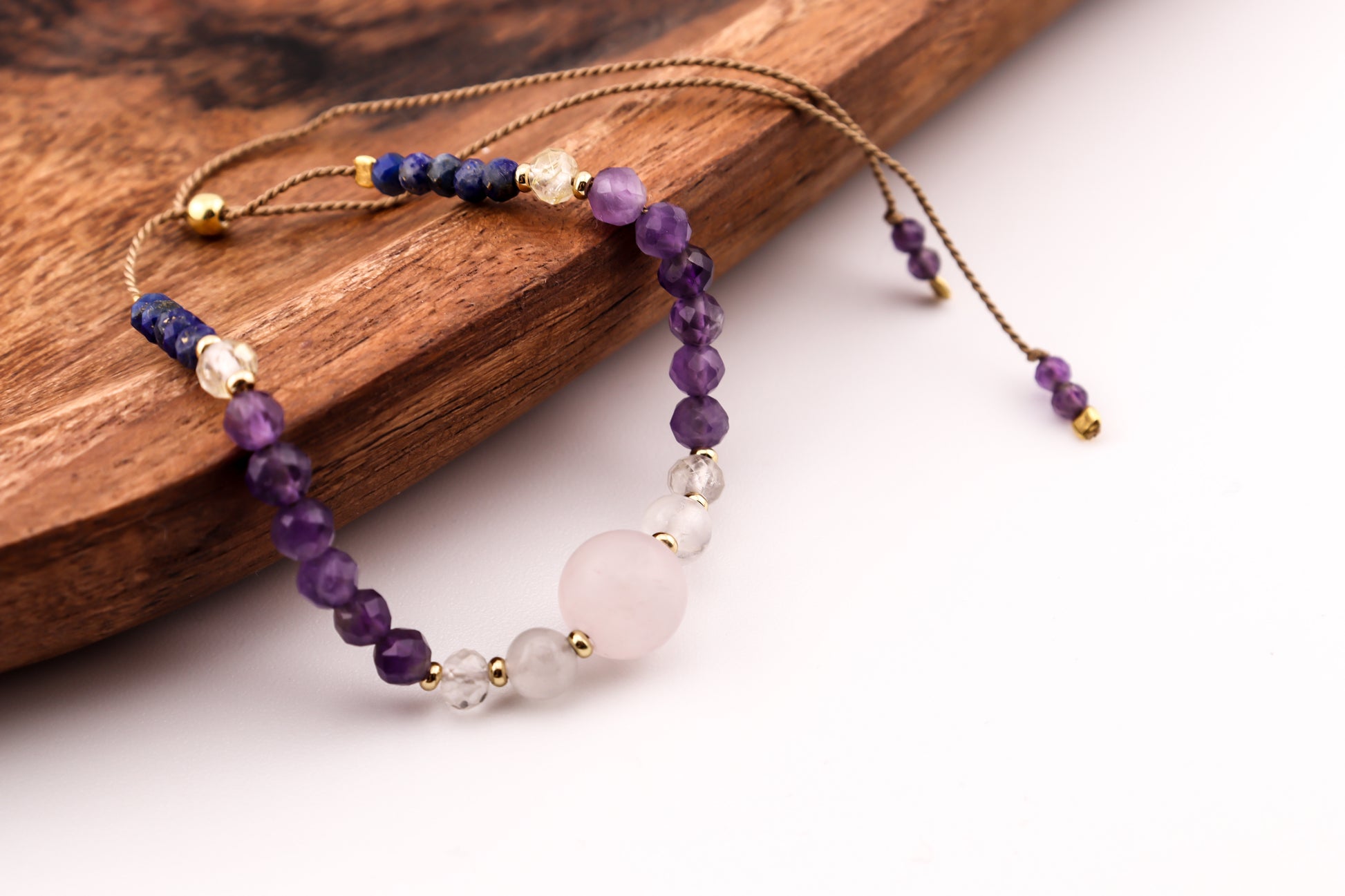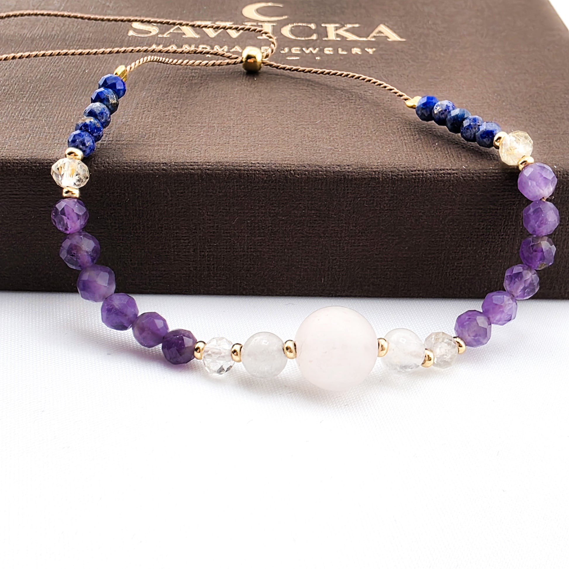 KLUCZ DO MEDYSTACJI - Duchowe Przebudzenie - bransoletka talizman z ametystem i lapis lazuli
