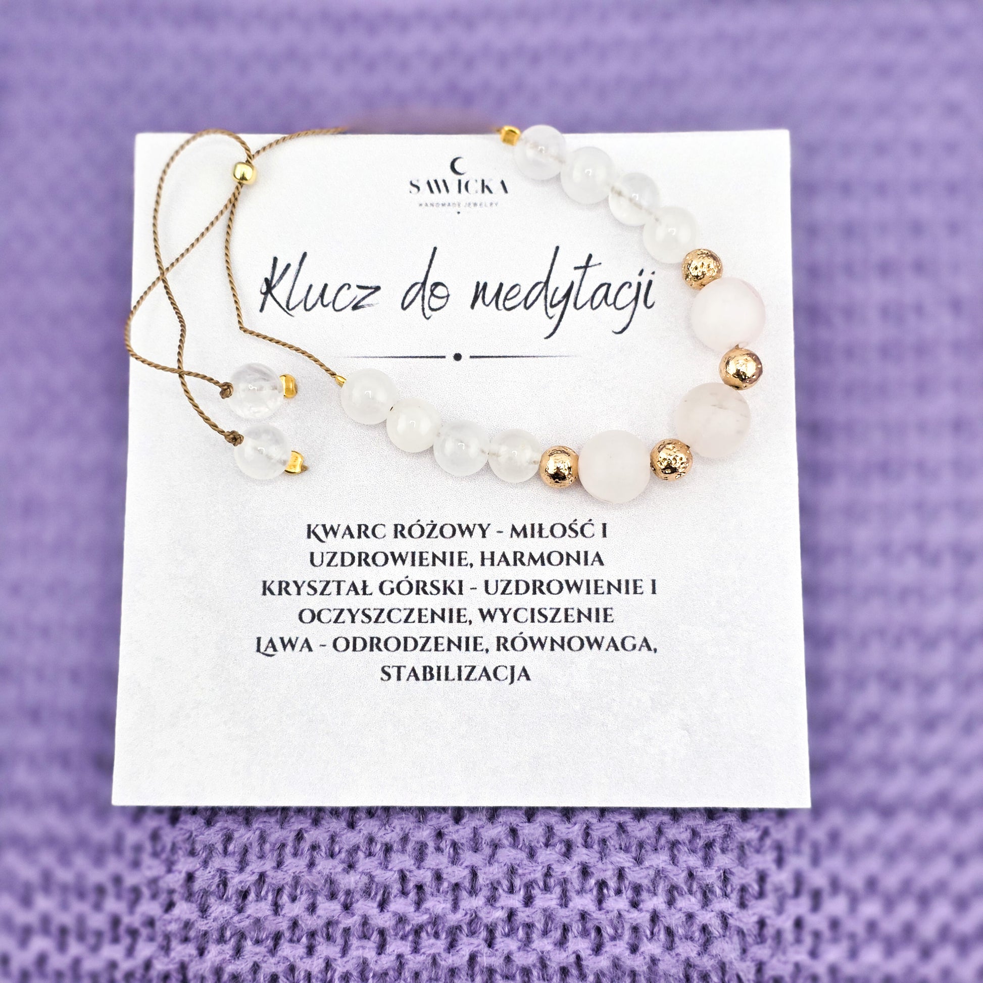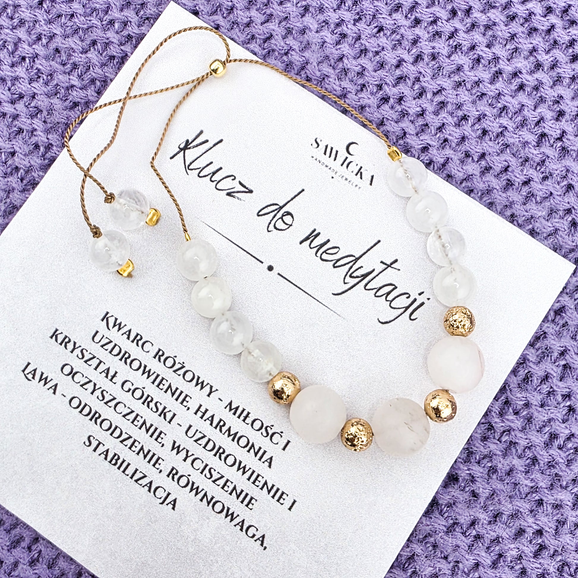 KLUCZ DO MEDYTACJI - Bransoletka talizman z kryształem górskim i kwarcem różowym