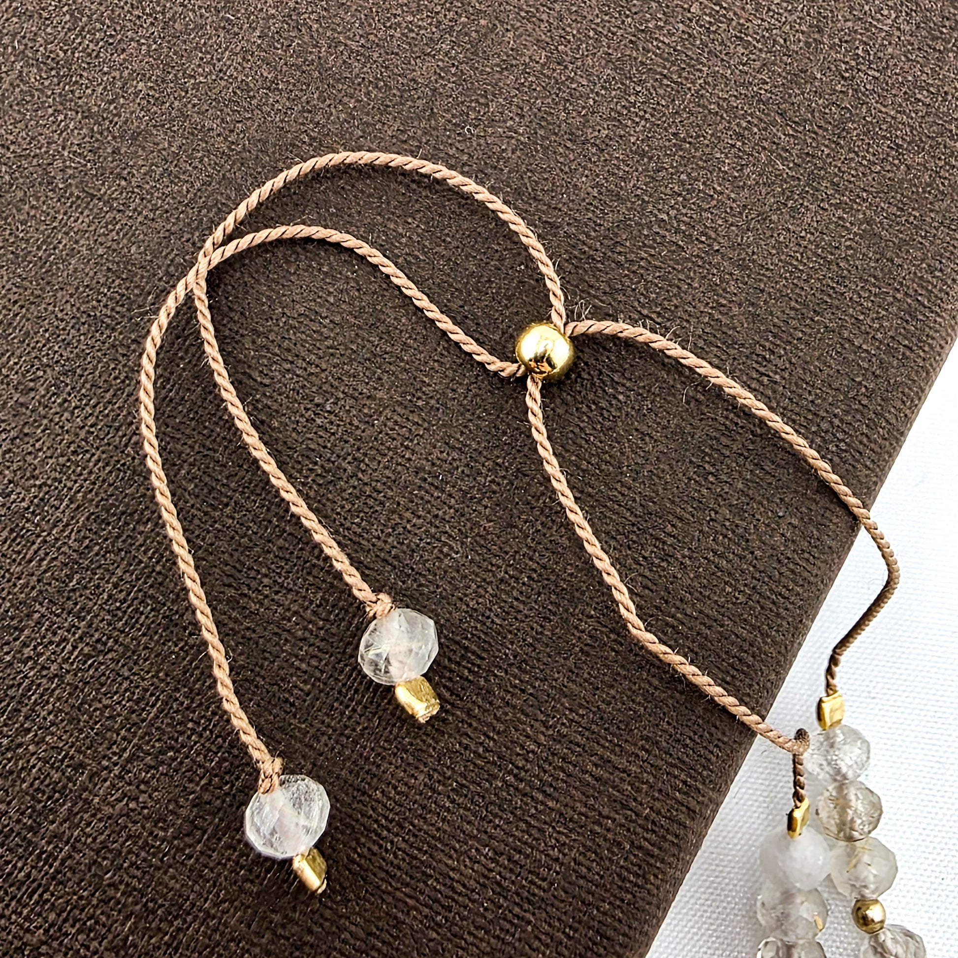 Materiał: Sznurek jedwabny , koraliki /elementy ze srebra próby 925 pozłacane 24kt złotem.