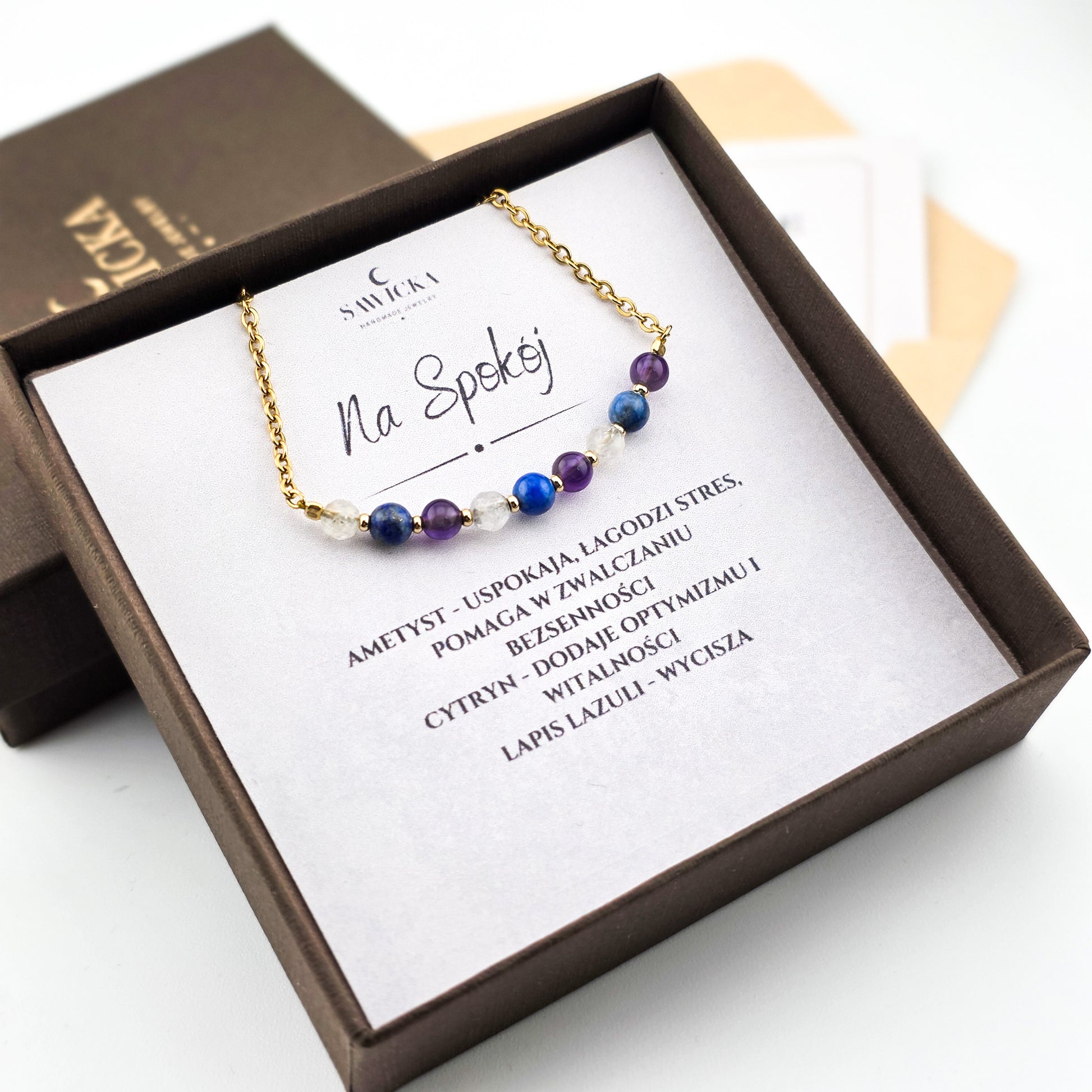 Zdjęcia biżuterii są poglądowe, każdy egzemplarz może nieznacznie różnić się między sobą barwą kamieni, ich kształtem czy rozmiarem ze względu na naturalne pochodzenie kamieni. Drobne ubytki czy zarysowania kamieni są dziełem natury i nie stanowią wady produktu.