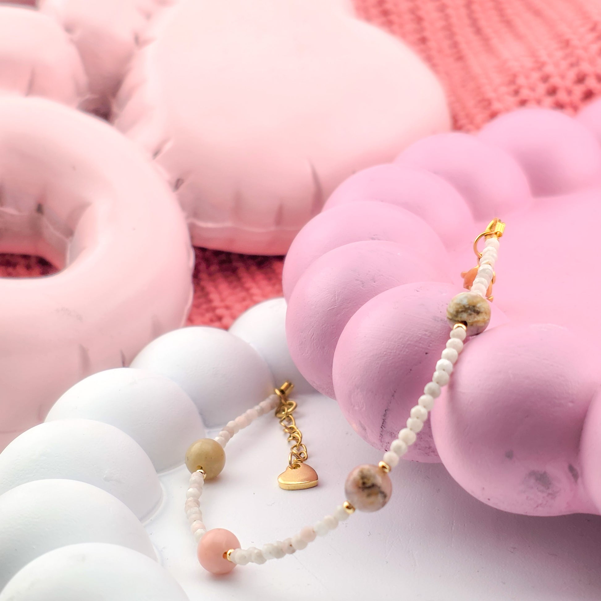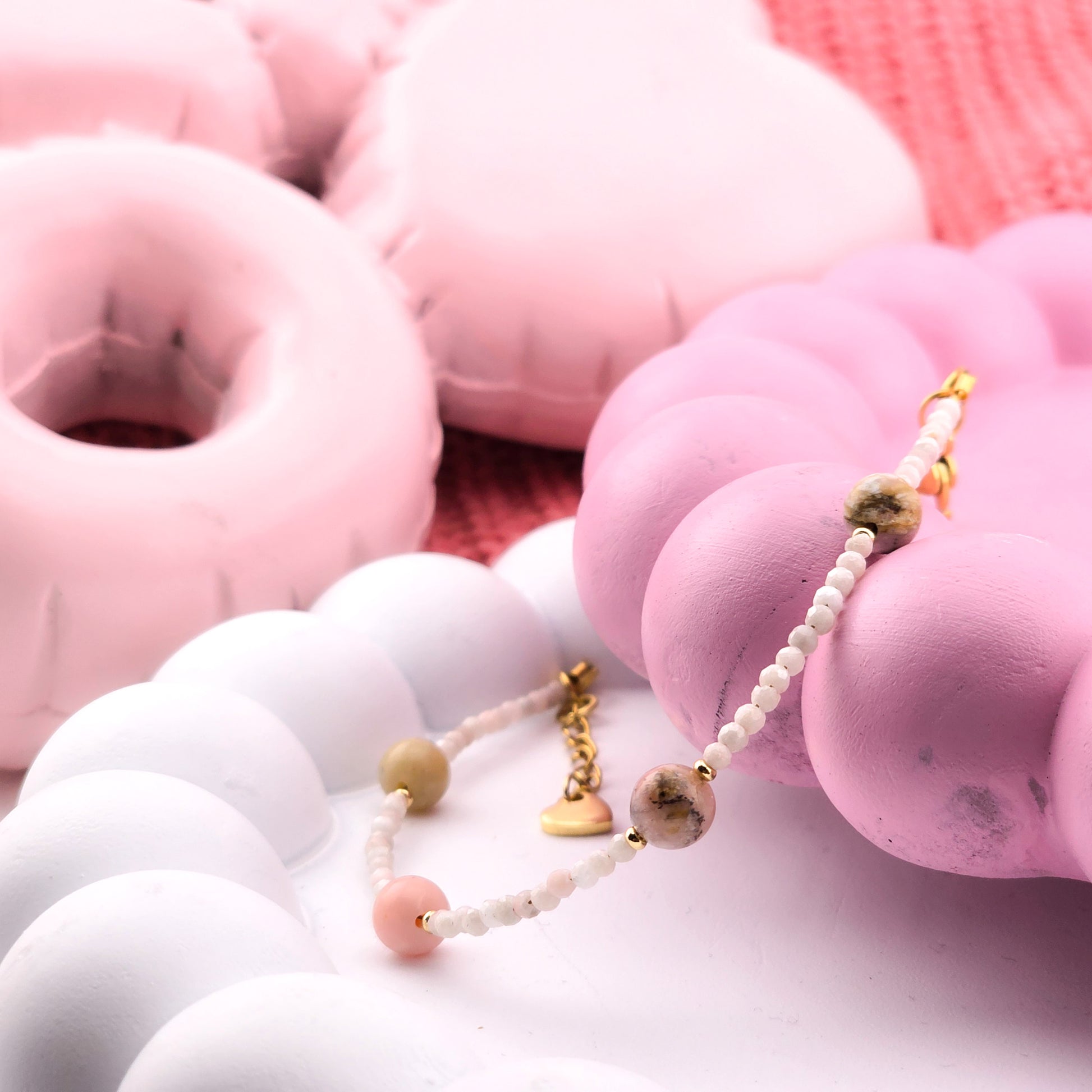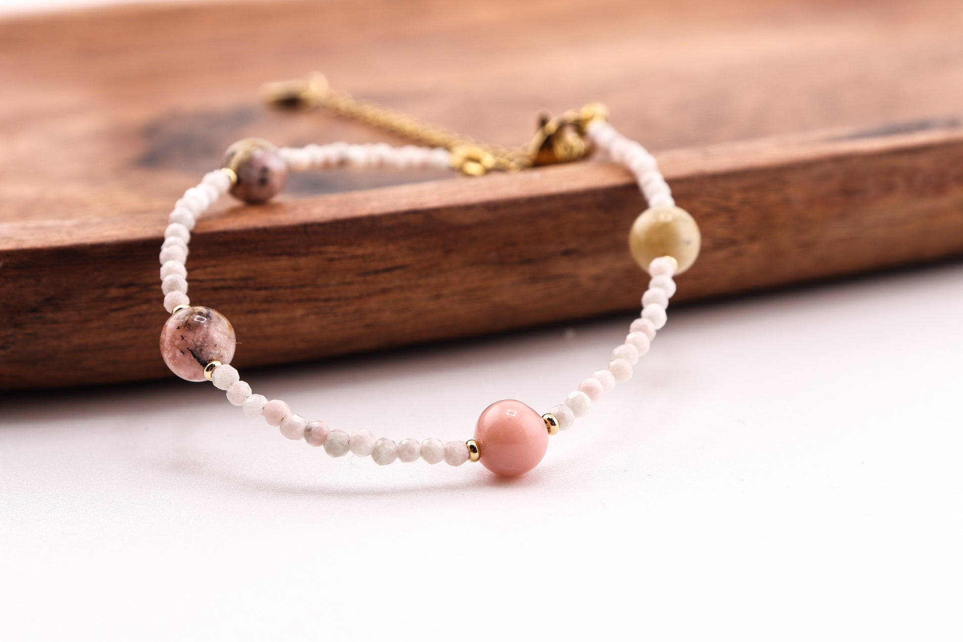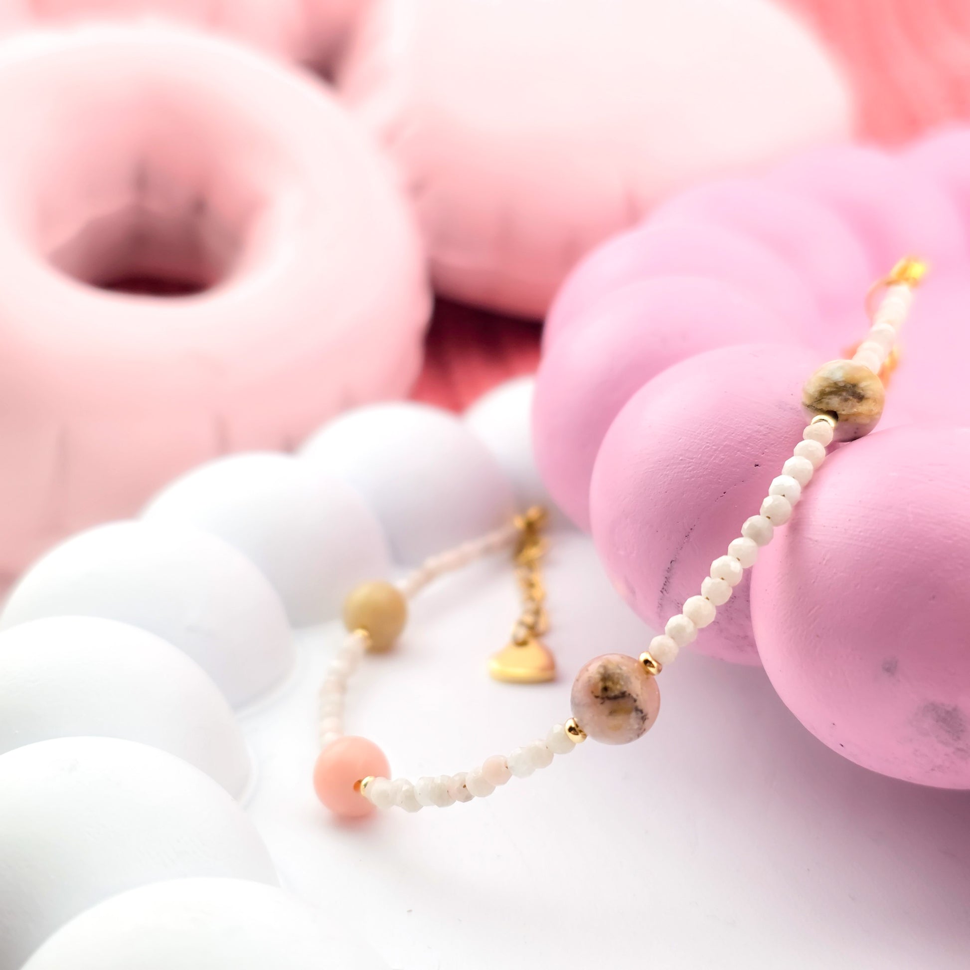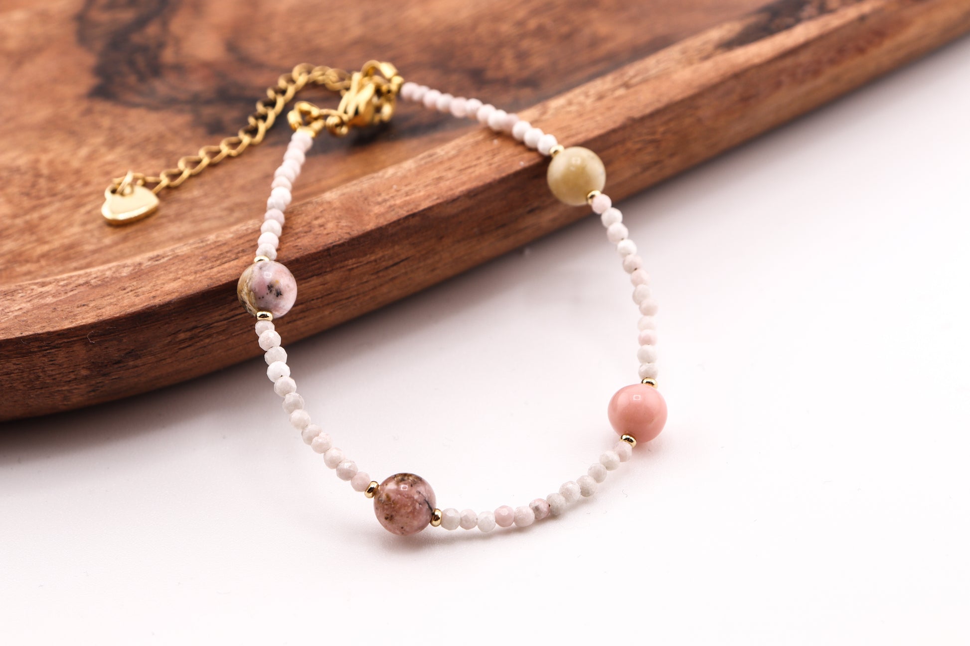 BRANSOLETKA Z OPALI RÓŻOWYCH NA ŻYŁCE