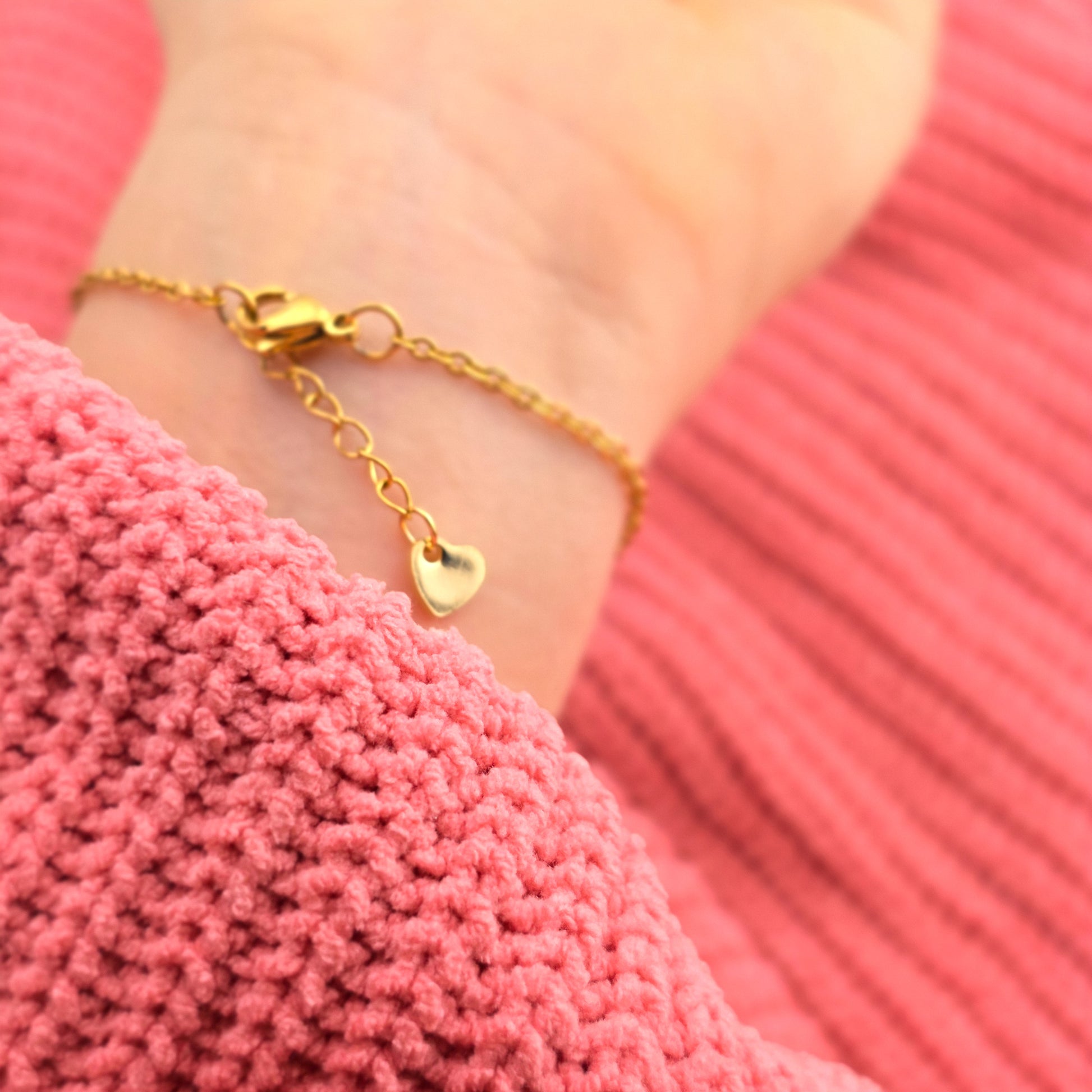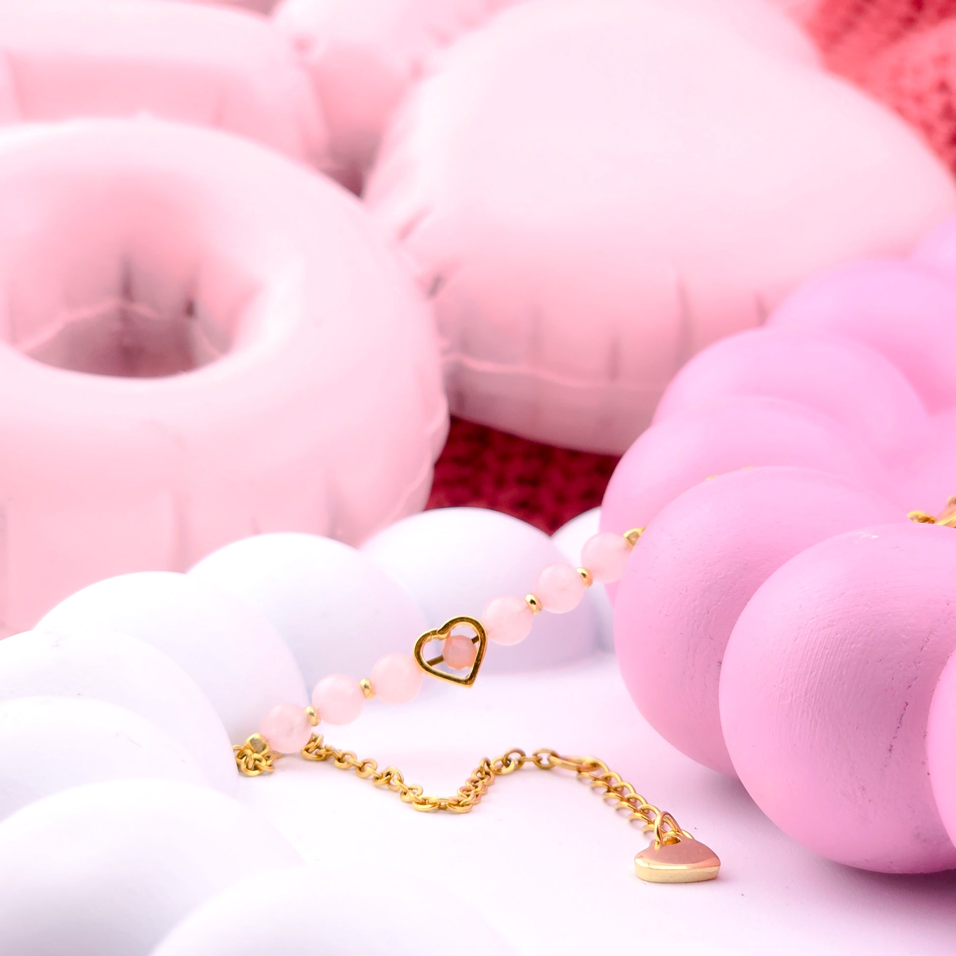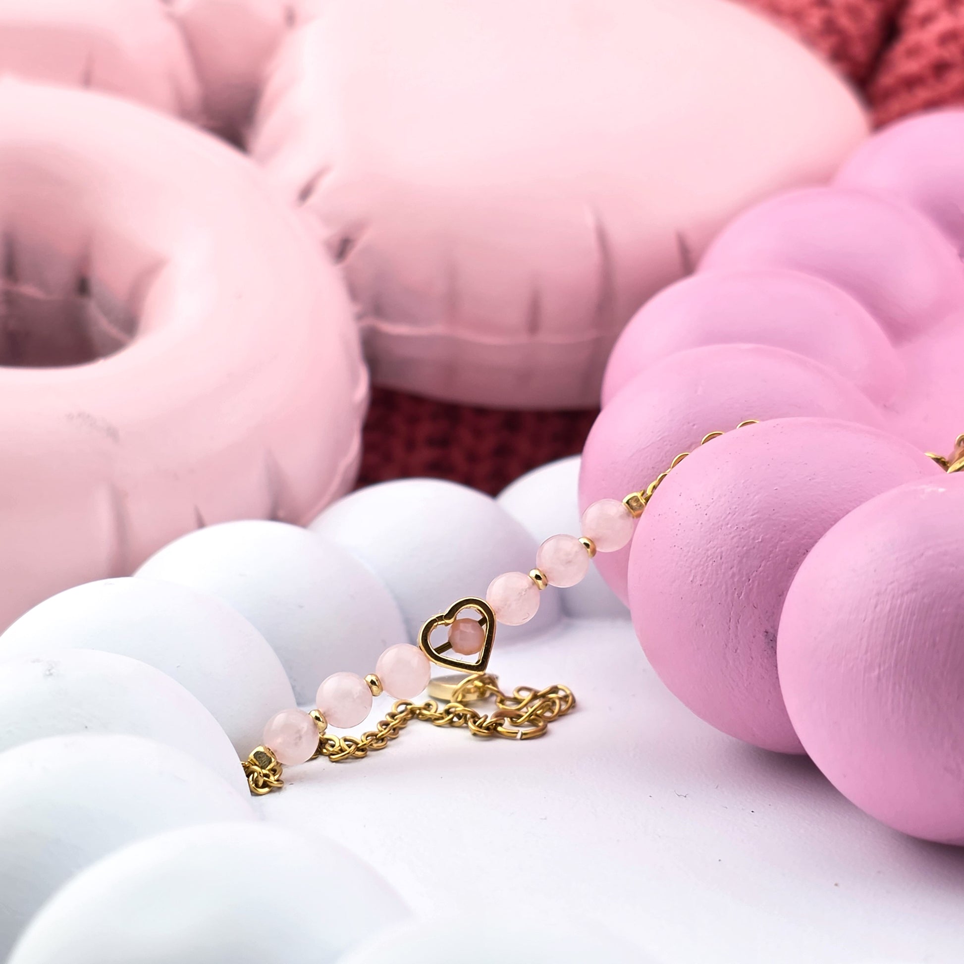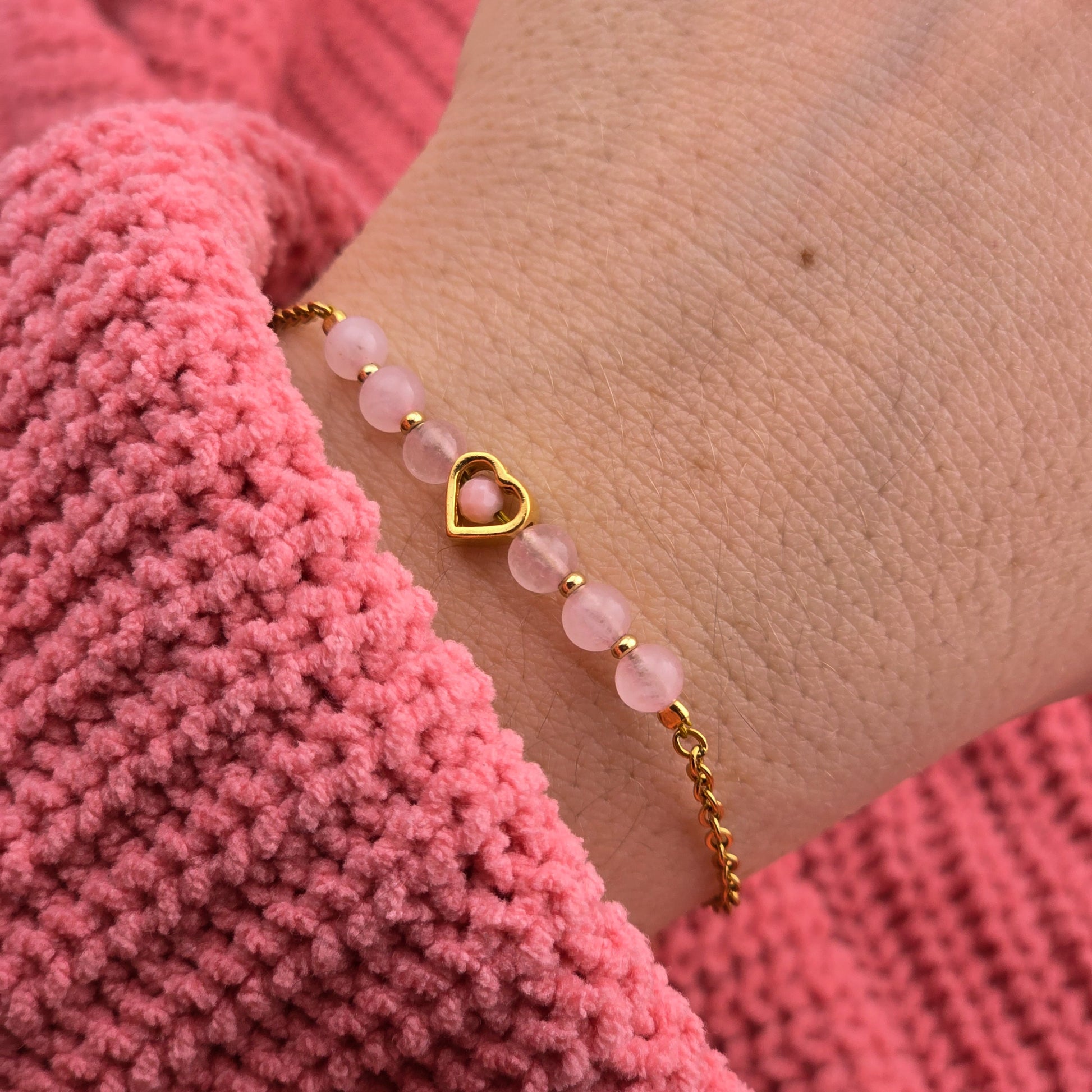 TALIZMAN MIŁOŚCI - bransoletka z kwarcem różowym i sercem - na łańcuszku