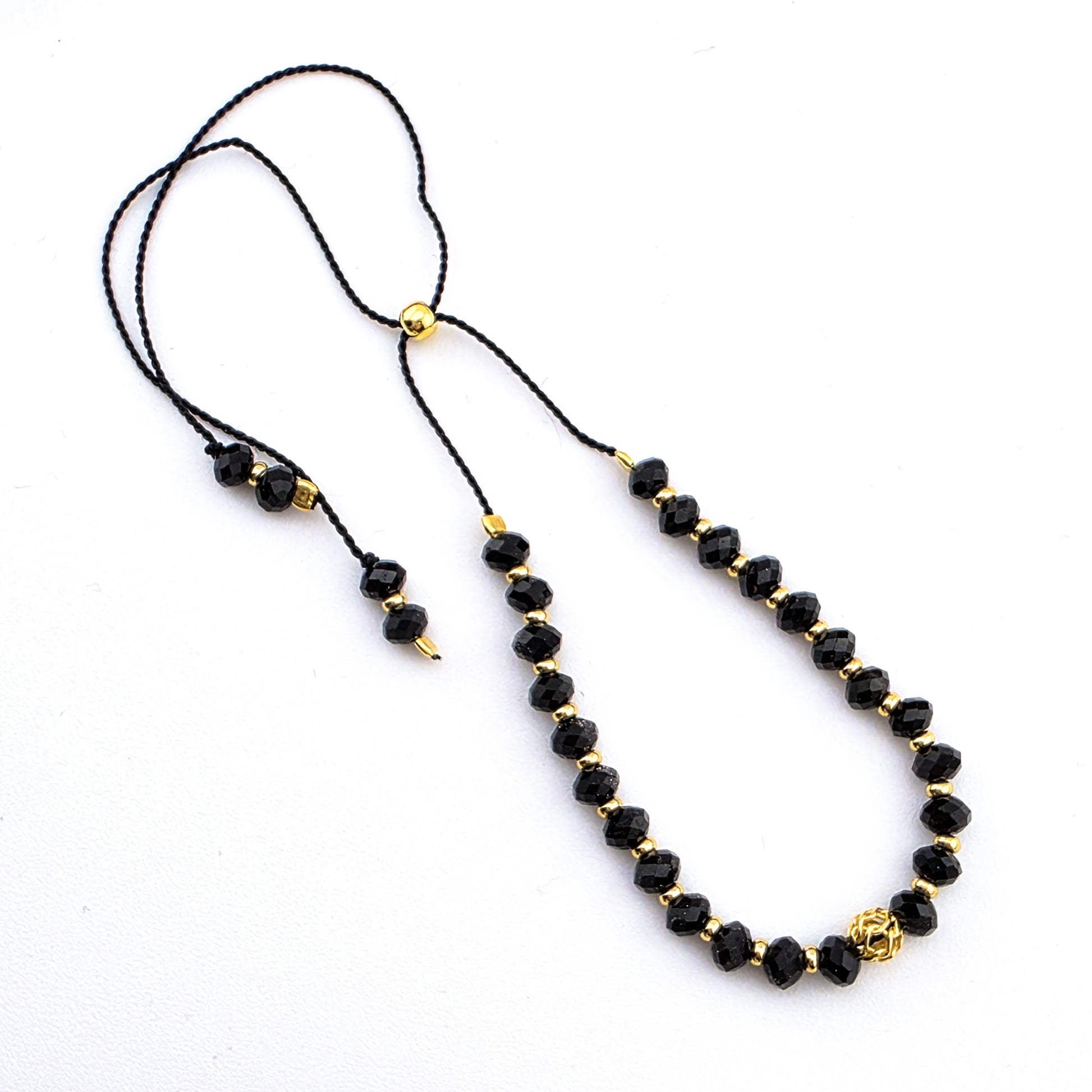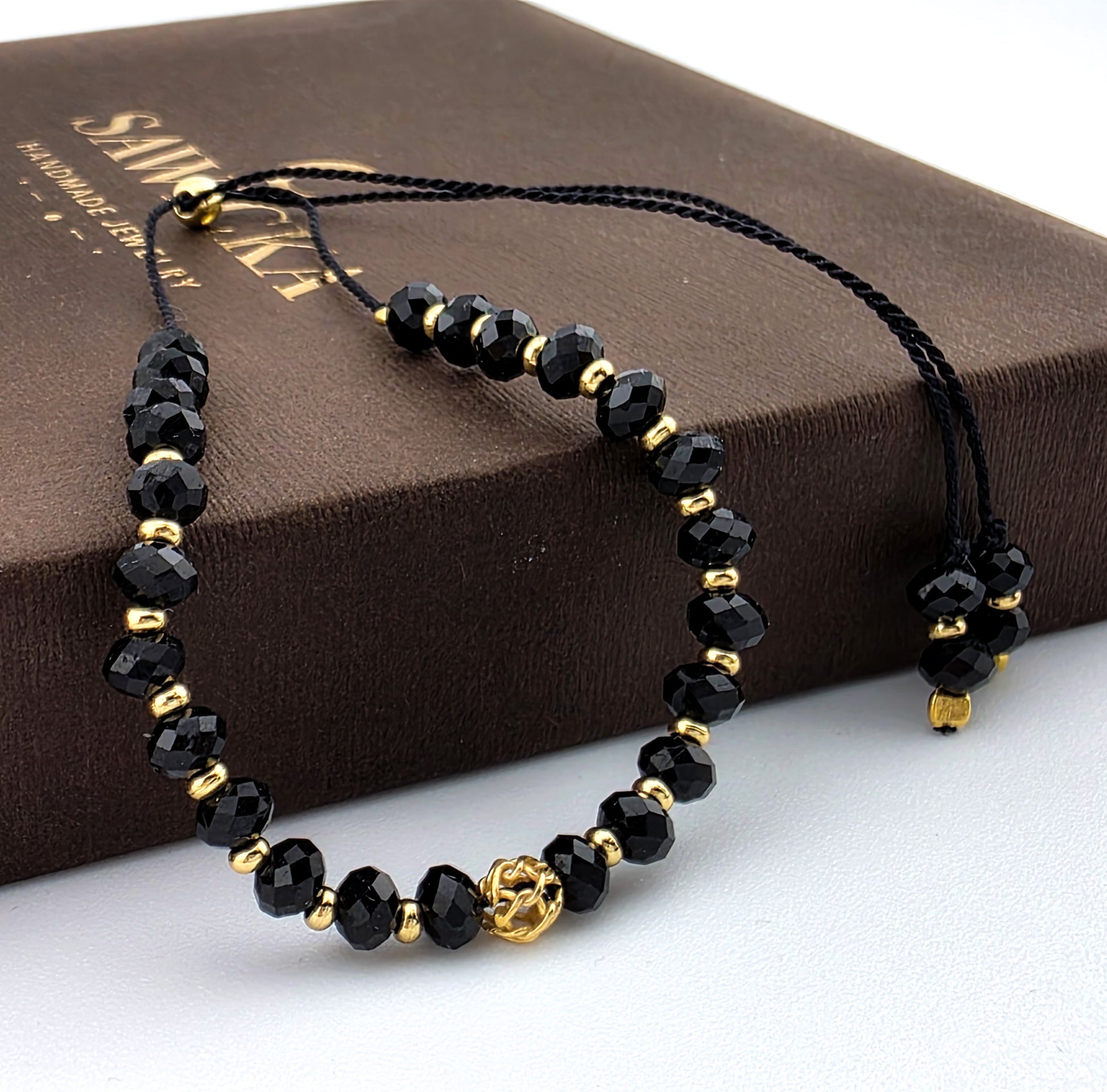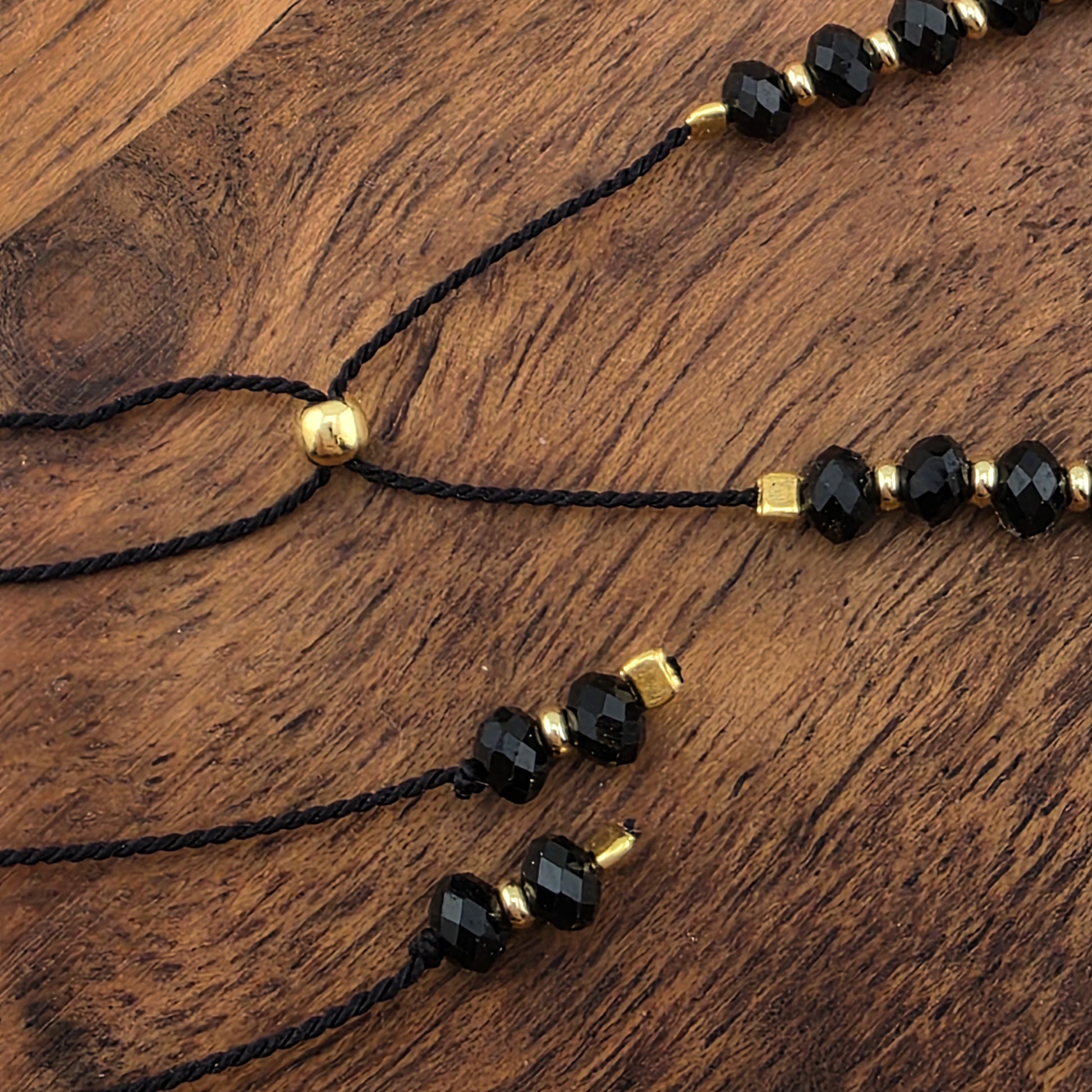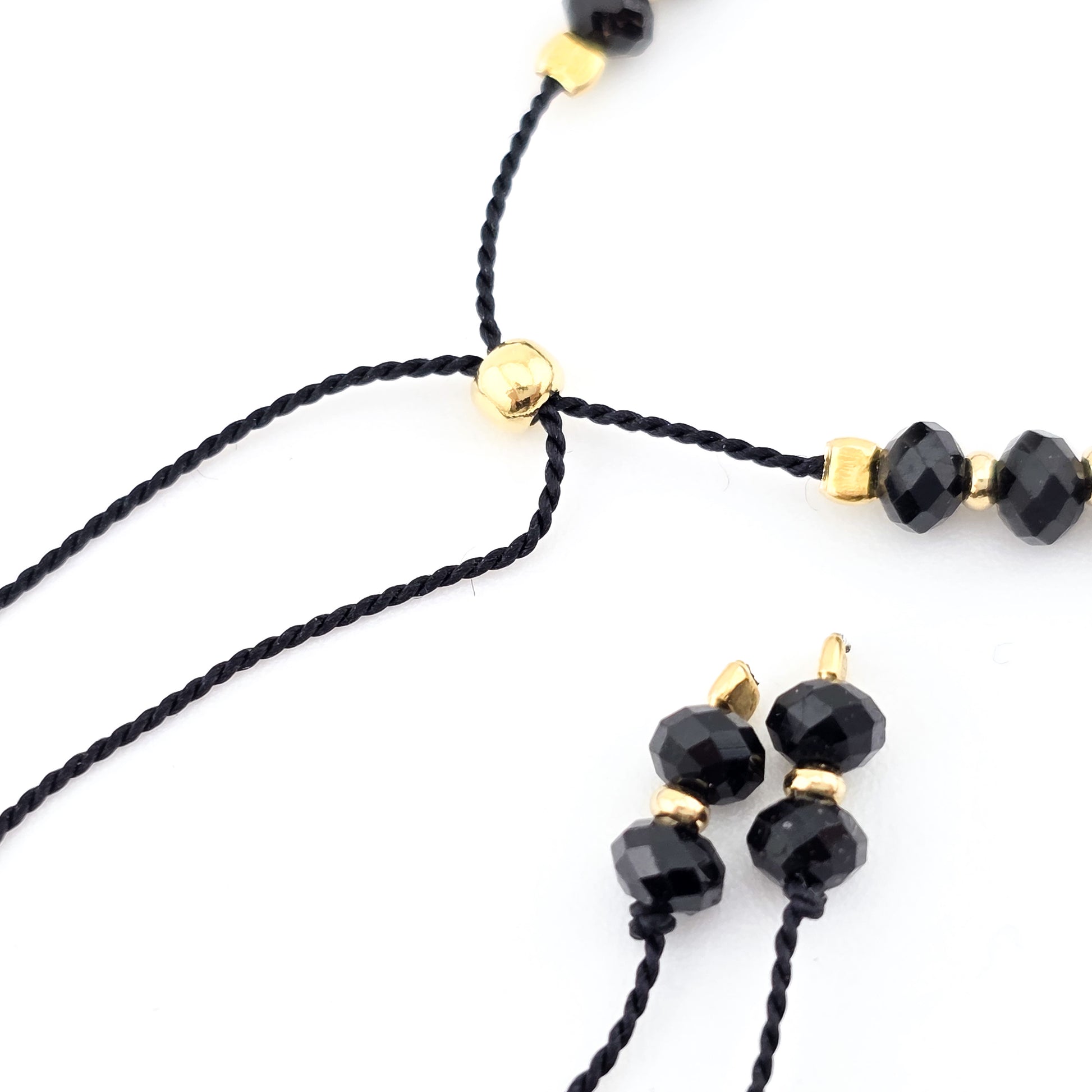 Materiał: Sznurek jedwabny , koraliki /elementy ze srebra próby 925 pozłacane 24kt złotem.