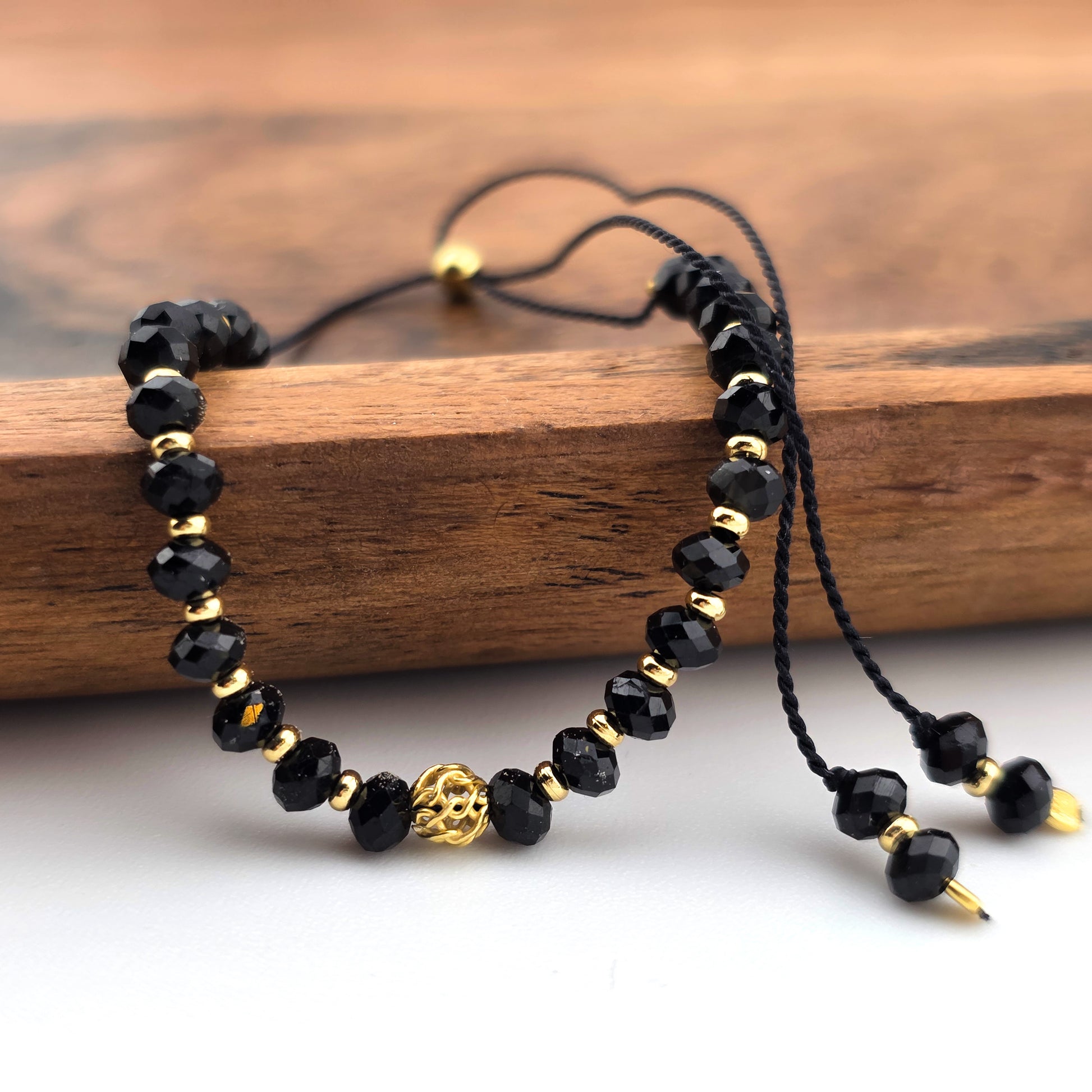 Turmalin z ażurowym koralikiem - bransoletka z kamieni naturalnych